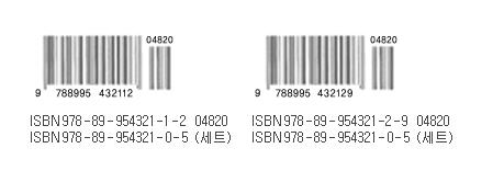 즉, 첨부파일로 올린 이미지를 보시면 알겠지만 바코드 아래의 숫자와 ISBN 978-89- 로 시작하는 숫자가 동일하다는 것을 알 수가 있을 겁니다.