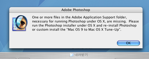 그렇다면 포토샵 7을 OS X 상태에서 다시 설치를 해주셔야 할 것입니다.