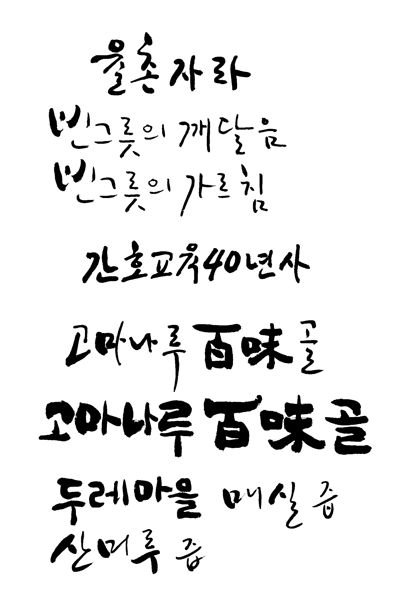 캘리모둠 예인 일반 5 7479 2009.02.21 00:21 의뢰하신 캘리를 모아 봤어요. 그리고 어디에 사용하것인지, 언제까지 필요 하신지, 원하시는 캘리 스타일은요? ( 참고 할 캘리그래피 샘플을 같이 올려 주시면 더 좋겠죠 ) 그리고 작업된 자료를 올려주시면 다음 작업에 도움이 많이 될듯 싶네요.