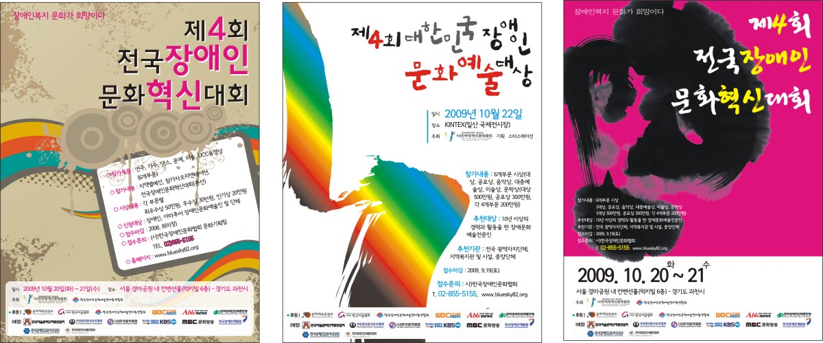 캘리 부탁좀 드려도 될까요? 길선진 일반 3 6280 2009.05.19 11:03 포스터에 제목을 좀 쓰려고 하는데요!!! 제4회 전국장애인문화혁신대회, 제4회 대한민국장애인문화예술대상 요렇게 두개만.. 부탁좀..드리겠습니다. -------------------------------------- 2절 포스터에 사용할 캘리입니다. 대충 컨셉은 첨부파일 정도로 하려고 합니다^^아직 수정하고 있는 단계라.. 미흡한 점이 많습니다.... 예인님 제가 미쳐 글을 보지못했네요^^ 죄송합니다!! 필요한거는 요번주 안으로다가 되면 좋겠지만... 바쁘시다면...조금 늦어져도 상관은 없습니다. 도와주세요~~~~