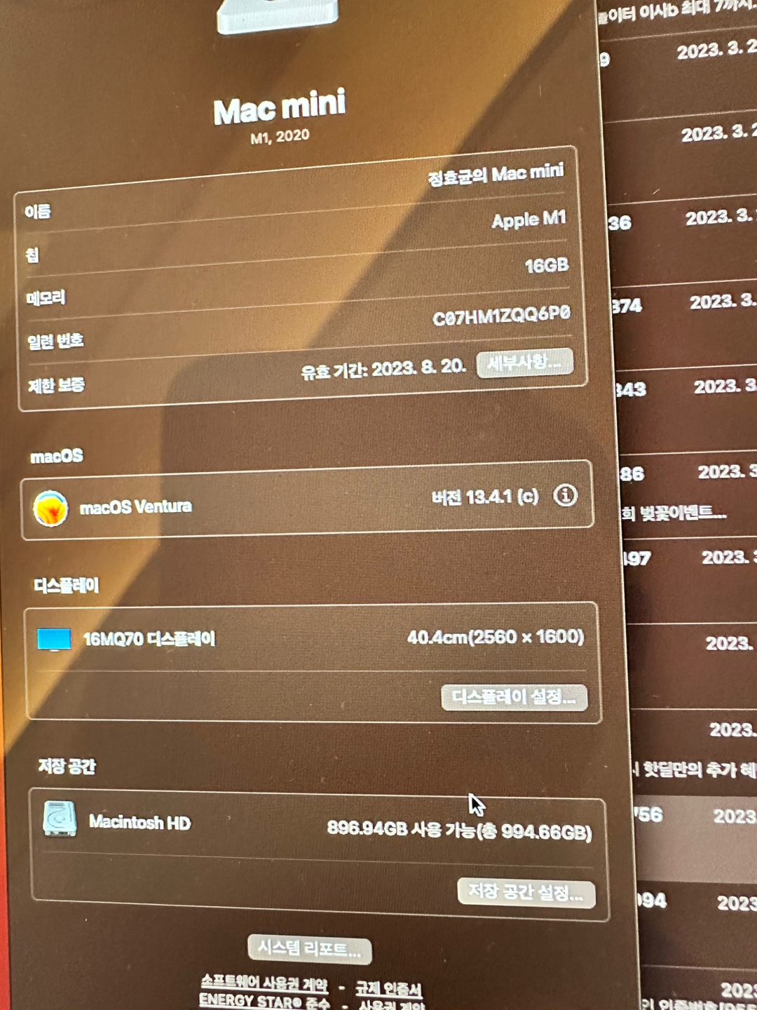 맥미니 2020m1 16기가 1테라 입니다 총사용시간 20시간정도입니다