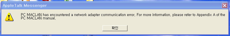 OS X(10)에서는 PC맥랜 없이도 공유가 가능합니다. 또한 해당 메세지는 PC맥랜이 깨져서 나오는 문제라 맥랜을 삭제하고 재시동후에 다시 시리얼번호를 넣고 인스톨 해야 됩니다. OS X에서는 시스템환경설정 공유에서 공유에 체크를 해주시고요. pc에서 공유하고자 하는 폴더를 우클릭해서 공유및보안에서 아래 두군데 체크를 해서 공유를 킨다음 맥에서 커맨드+k를 눌러서 pc에 IP주소를 입력하면 맥랜없이도 공유가 가능합니다. ===== 맥A/S,맥구입 또는 인텔맥에 윈도우XP 설치가 필요하시면 위에 (베스트맥-A/S,판매)아이디를 클릭하고 자기소개를 참고해 주세요.
