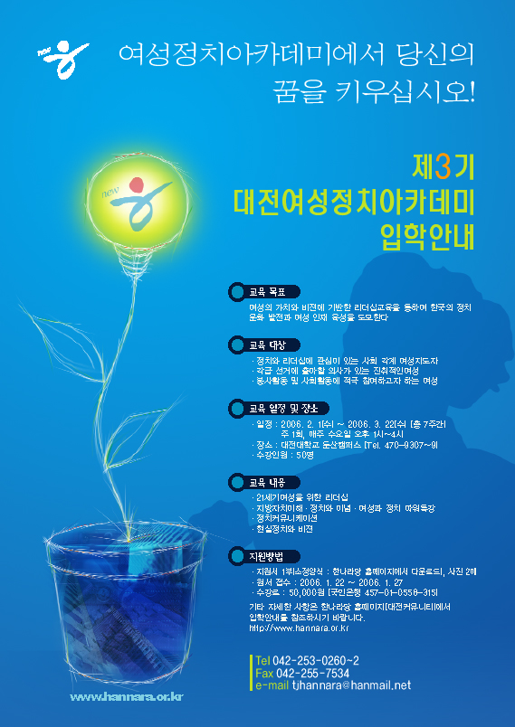 ^^ 컨셉이 아주 좋습니다! 글자의 강약과 여백을 더 주심은 어떨까요? 색상도 아주 좋네요... 아자 화이팅!