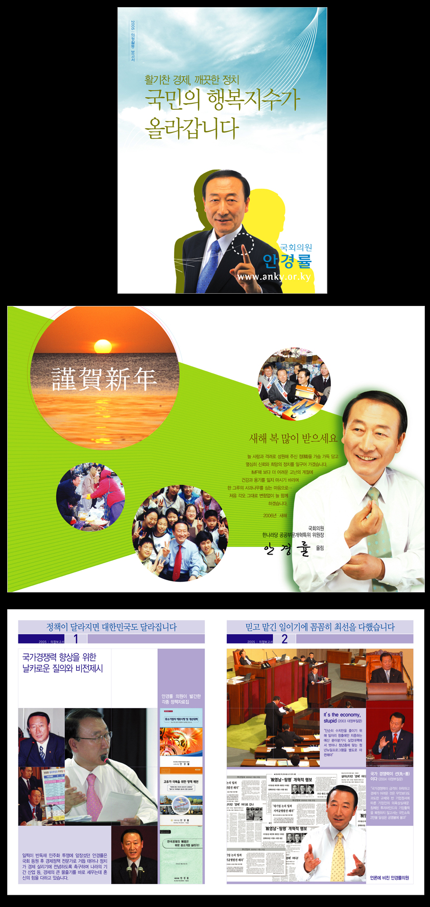 ^^ 내용이 없는 것은 화보위주로 한다고해서리 최대한 글은 사용하지 않았습니다.^^;; 이번 의정보고서는 아직 저희 회사를 믿지 못해서 기존 기획사에서 제작한다고 합니다. 올해 의정보고서부터는 저희 맡긴다고 하는데 아무튼 기분은 살짝나쁩니다. ...비쥬얼쪽이라하면,,,, 구체적으로 설명을 해주면 좋겠습니다....^^ 부탁...지면쪽은 화보중심으로 해 달라고 해서 면분할을 이용한 레이아웃을 사용했는데.. ^^