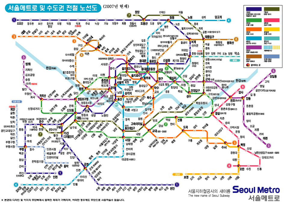 07년 신설노선도입니다 서울메트로및 한국철도청과 단독 계약하여 만든 노선도입니다