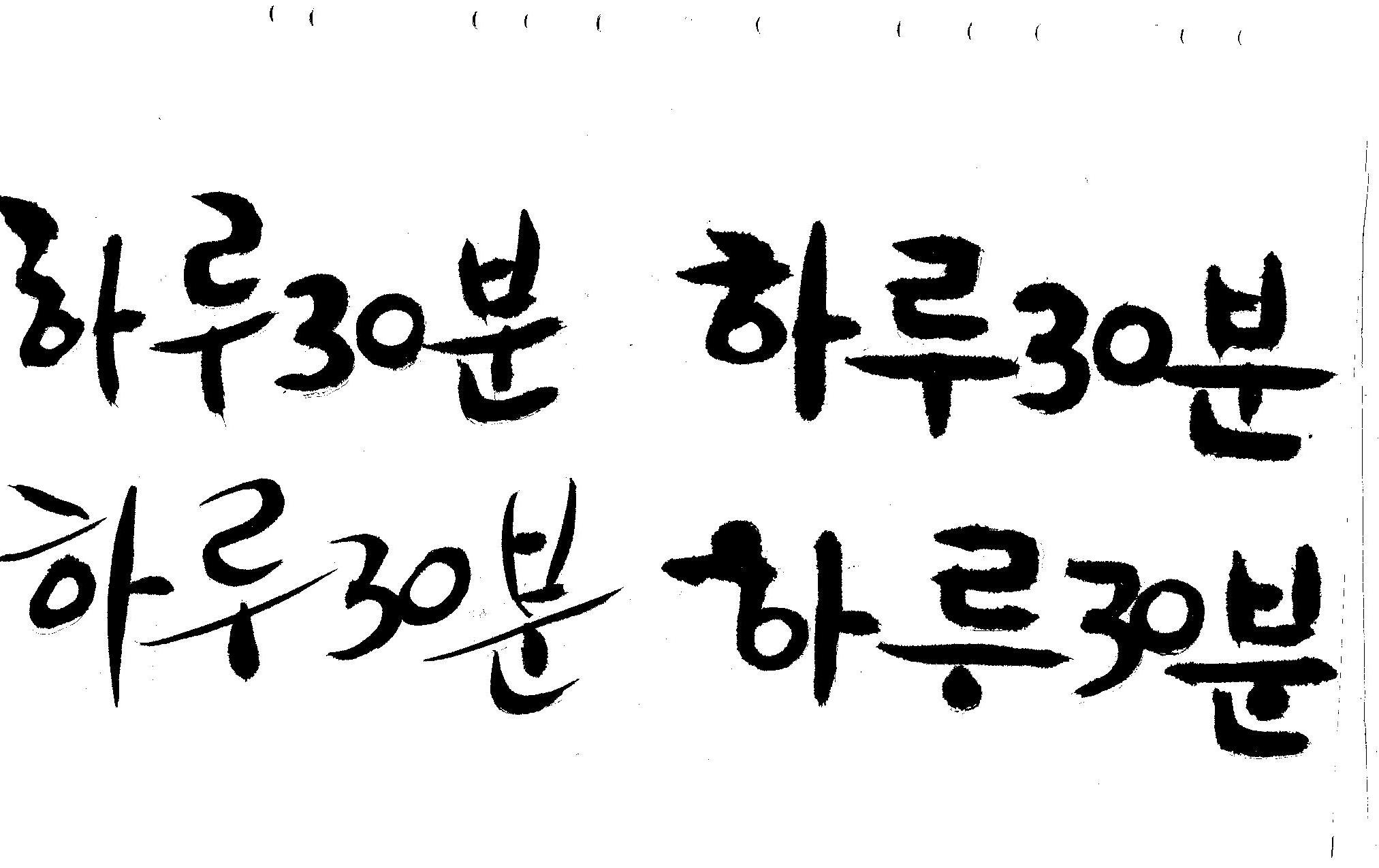 캘리부탁드려요 김철호 일반 0 6910 2008.12.31 13:43 > > 하루30분 <------- 이걸 캘리로 부탁드립니다 > 희망찬 새해 되세요... 스캔이 삐딱하게 되어 손좀 보셔야겠네요..