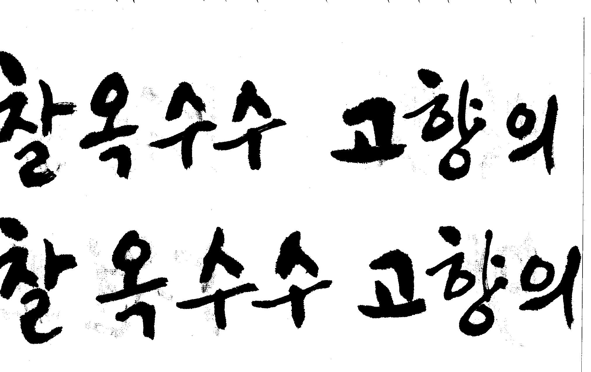 캘리고수님.. 캘리 부탁드립니다. 김철호 일반 1 11218 2008.10.31 15:44 > > 강원도 > 찰옥수수 > 고향의 맛 > > 이상의 문구 입니다. > 캘리 고수님들 시간되시면 도움 부탁드립니다.. > 유용하게 쓰시길 , 스캔이 깨끗하지 못해서 수고 좀 하셔야 겠네요.. "맛"이 라는 글자가 잘 않나와서 따로 올립니다.