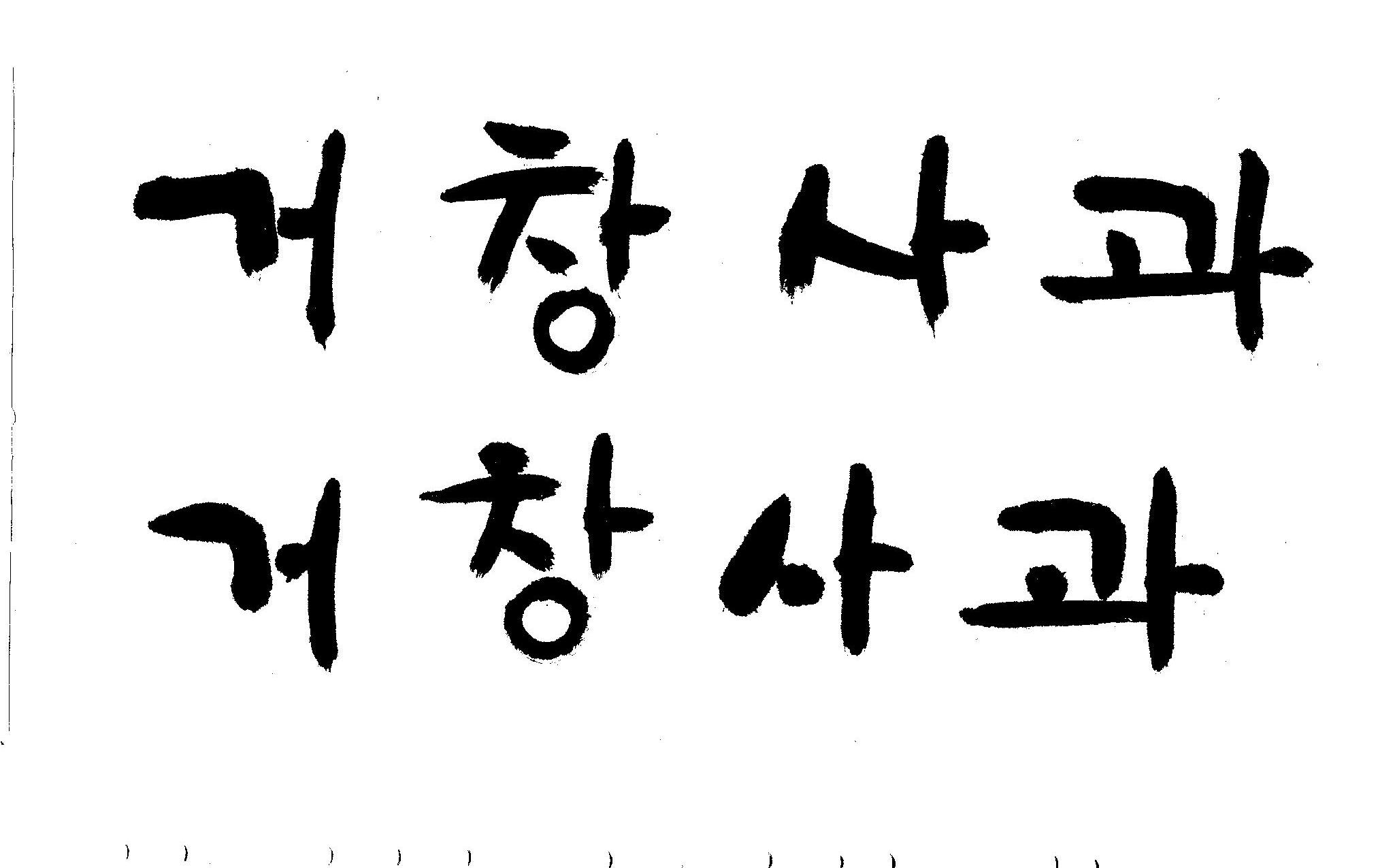 캘리 부탁드립니다. 김철호 일반 0 10391 2008.12.29 16:02 > > 안녕하세요? > 전문대 졸업하고 편집일 하다가 > 얼마전에 패키지쪽으로 이직했습니다. > '거창사과'라고 박스 디자인 주문이 왔는데요 > 일반적인 서체를 사용하니 기존 박스랑 별 차이가 없네요 > 많이 바쁘시겠지만 '거창사과' 캘리 부탁드립니다. > 유용하게 쓰시길..