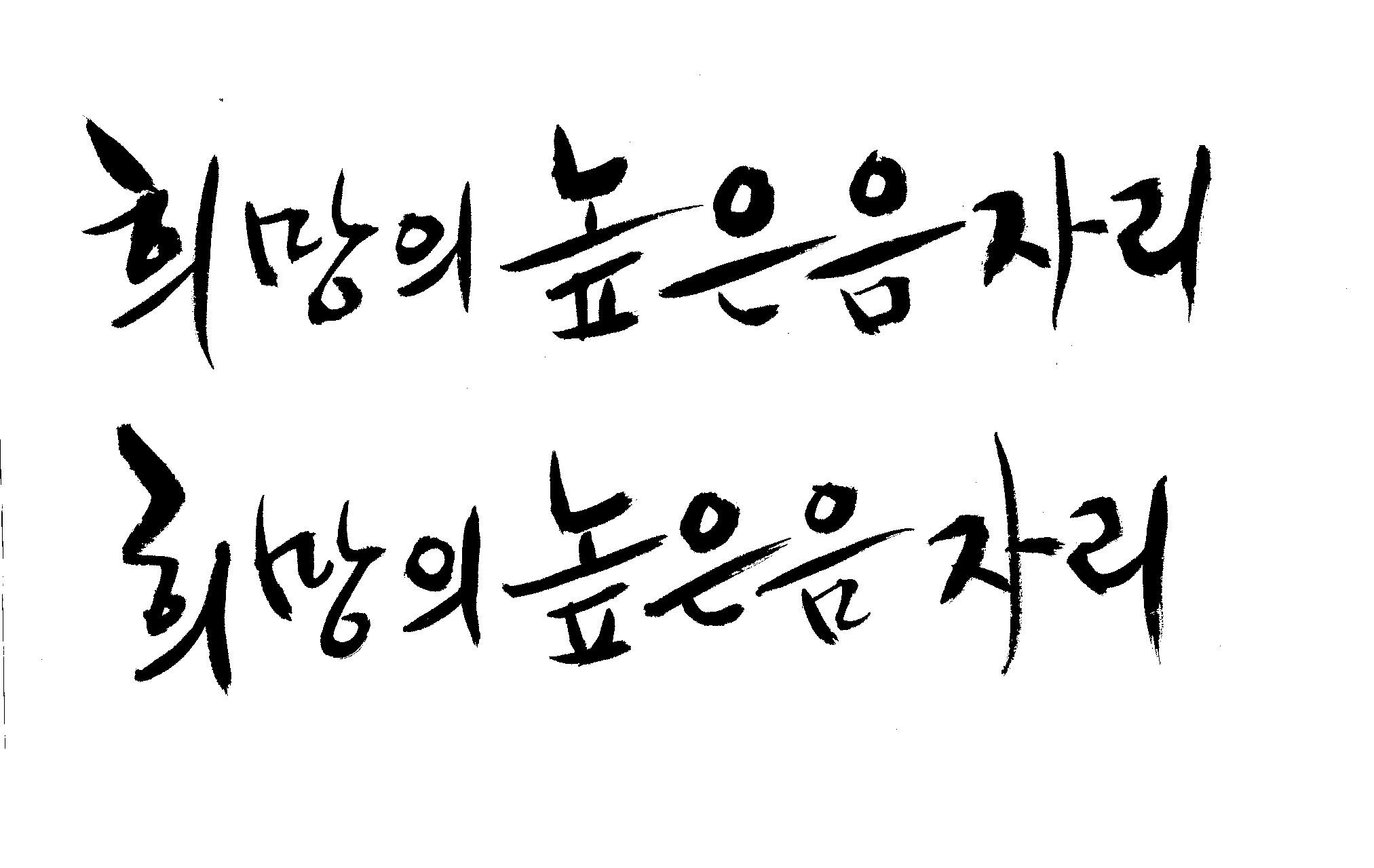 저도 캘리좀부탁이요 ^^;; 김철호 일반 0 6723 2009.01.14 10:59 > > > > > 희망의 높은음자리 > > > > 감사합니다 ^^ 꼭부탁드려욧 ㅎㅎㅎ > > > > 좋은 글이라서 신경썼는데 > 만족할 만큼 않나왔네요.. > 유용하게 쓰시길... >